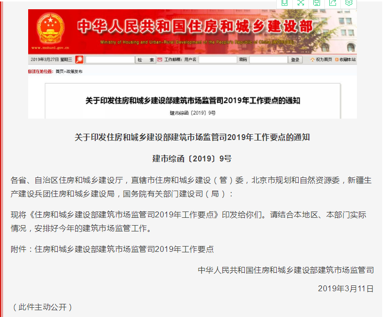 住建部建筑市場監(jiān)管司《2019年工作要點》出臺!