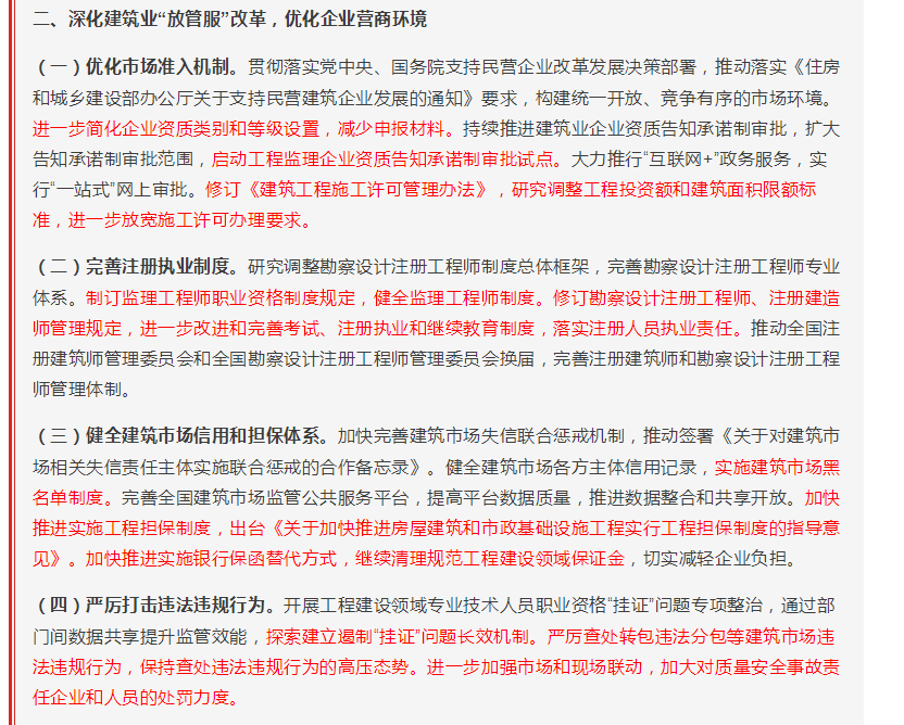 一、建筑業(yè)重點領(lǐng)域改革